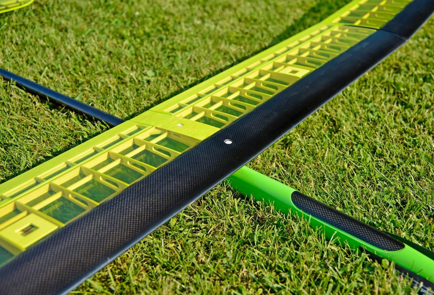 The wing is expertly constructed from balsa and carbon, with a strong carbon DBox front part and beautifully applied transparent film covering, in contrasting colours. Unlike the BD, the Circle Dancer 3600 has flaps built into the centre panel and the full house version has ailerons in the tip panels. This gives better control authority (especially when landing in gusty conditions), good landing approach control, and the ability to control the airfoil’s camber to optimise the wing for cruising, thermalling, or flying faster against the wind. The standard of construction is excellent, and the prefabrication is very complete. The only things left to do are gluing the tailboom to the pod, gluing the fin, installing the control surface control horns, fabricating linkages for the flaps and ailerons, and fitting the RC and powertrain.