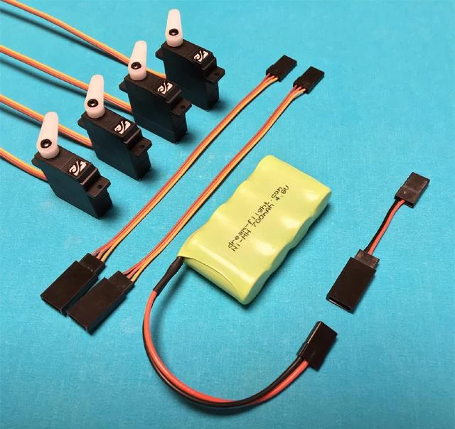 The battery, servos, and extensions feature universal style connectors (fits Futaba/Hitec/JR/Spektrum)