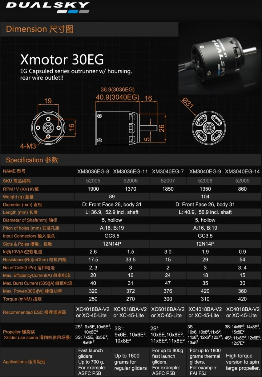 The XM3036EG-11 is a high quality cased outrunner for models weighing 800 – 1600g.