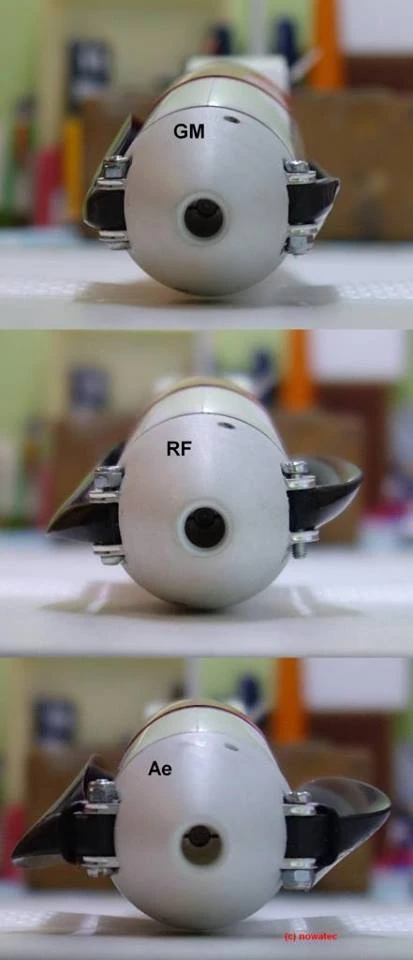 These blades are thinner (they have a higher aspect ratio) than normal folding propeller blades, allowing larger diameter blades to be fitted without pulling too much current. This increases the propulsive efficiency of the powertrain. They are also engineered to fold closer to the fuselage, and cause less drag when folded than other props. See photos 3 and 4 for a visual comparison of GM, RF and Aeronaut props, kindly produced by Andre Jeber Demetrio.
