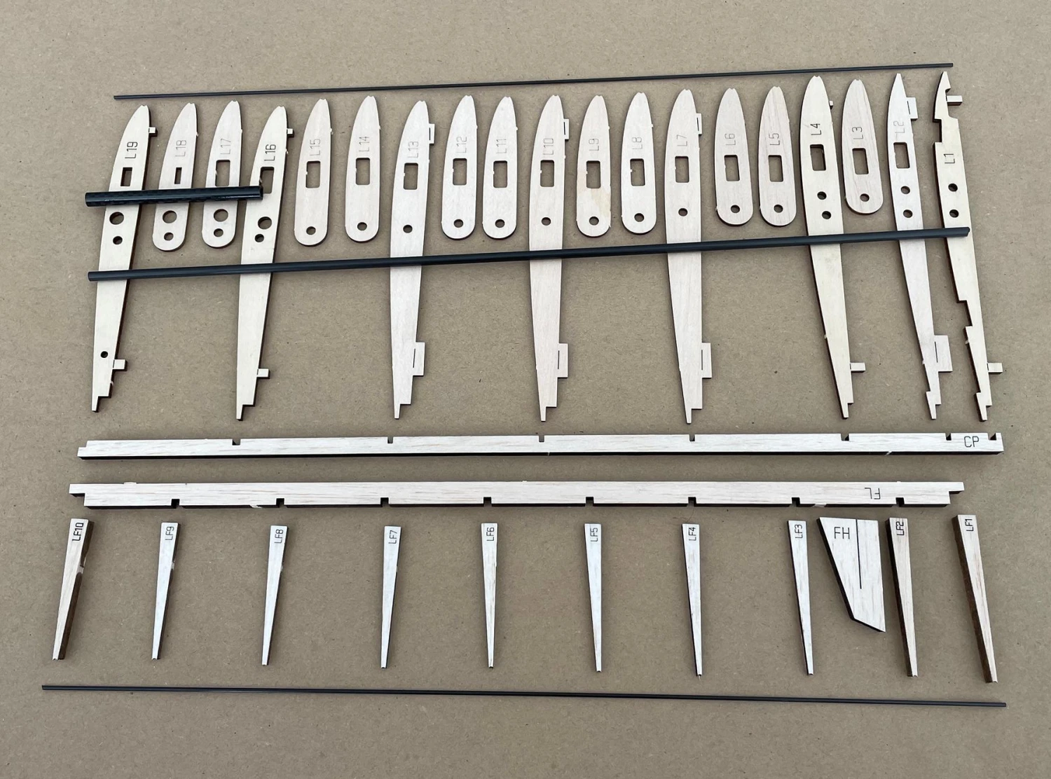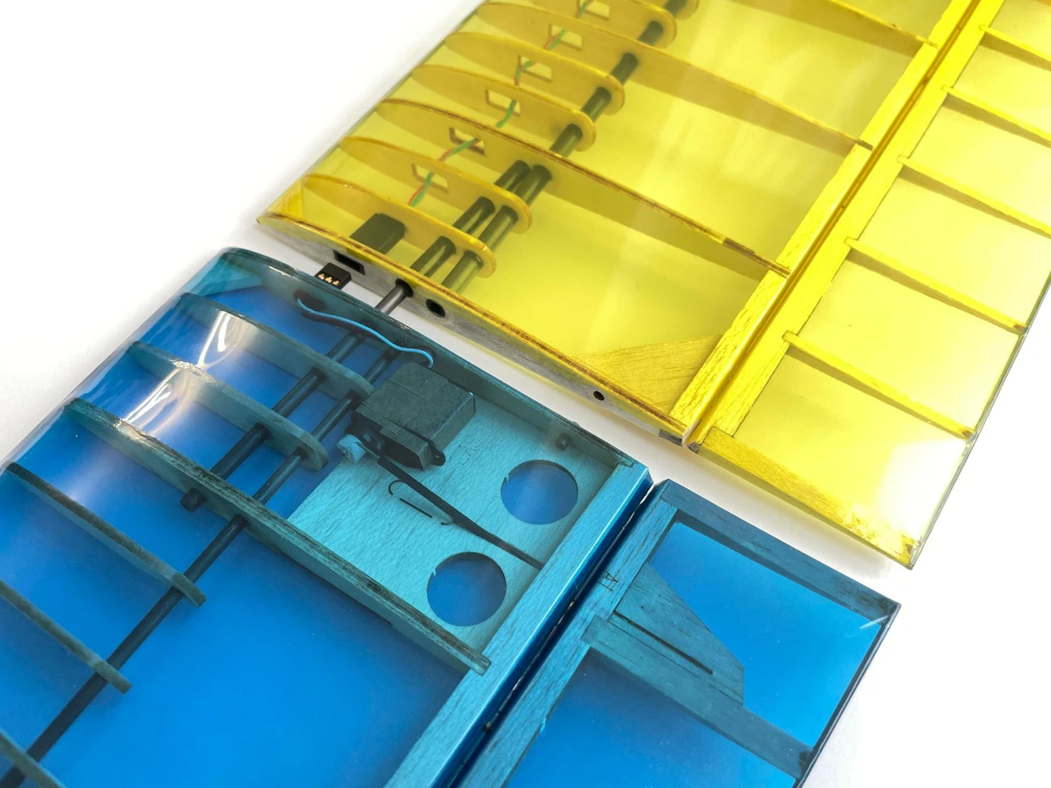– Accessories pack that includes wing mounting bolts, nuts, pushrod material, GF control horns, pull-cables, torsion spring material, etc.