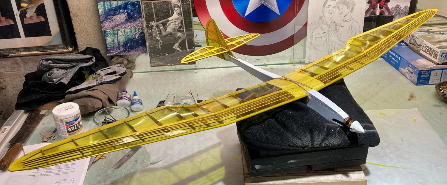 See this RC Groups Micro BOT thread for more info. Supplied with translucent white tissue-like covering material. Or use Solite covering film if a different finish is preferred.