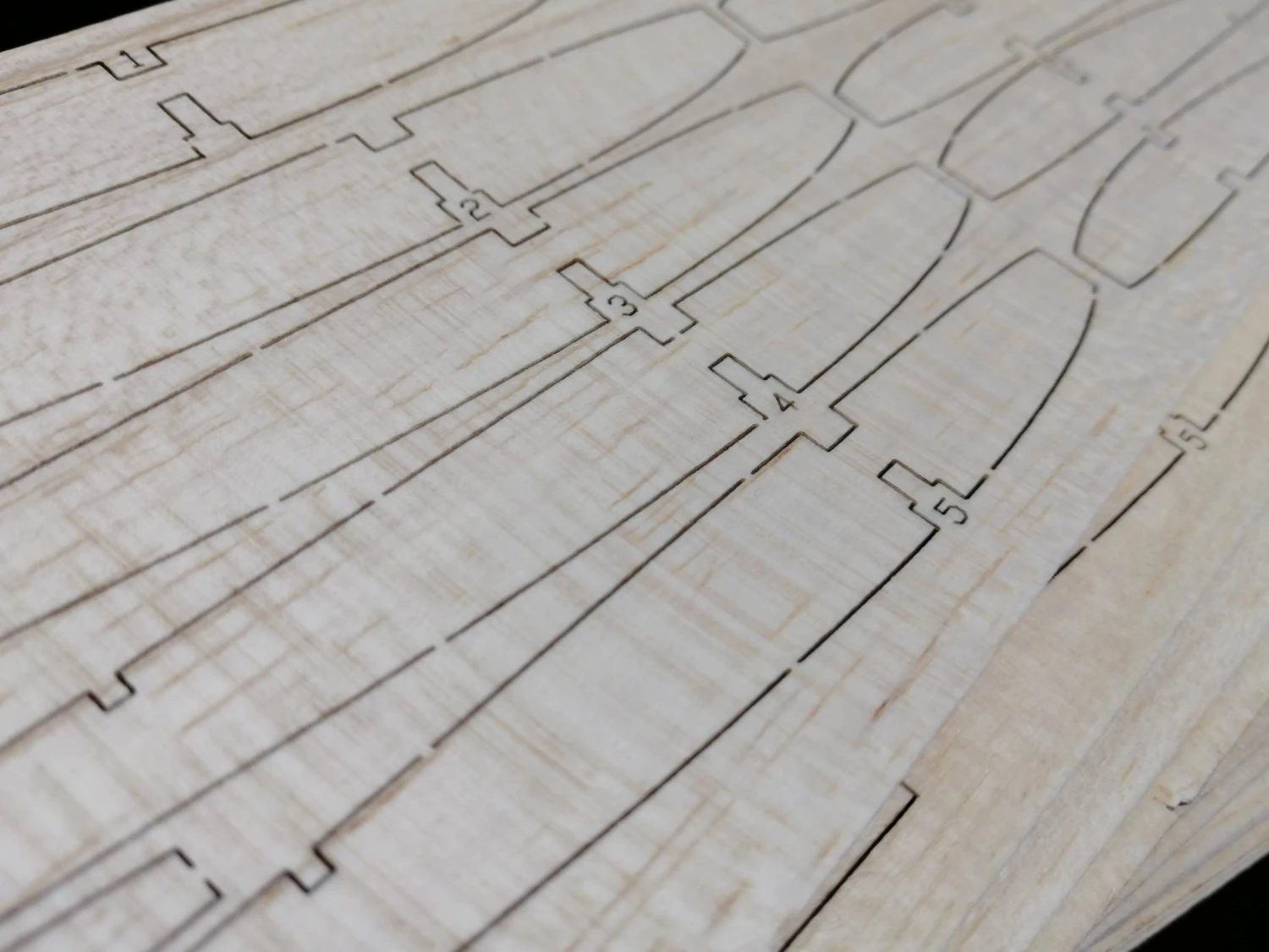 The wing is of conventional construction with spruce spars and riblets. The tails are quick build lightweight built up surfaces. The narrow fuselage is all wood construction with ply front sides and a balsa and spruce rear.