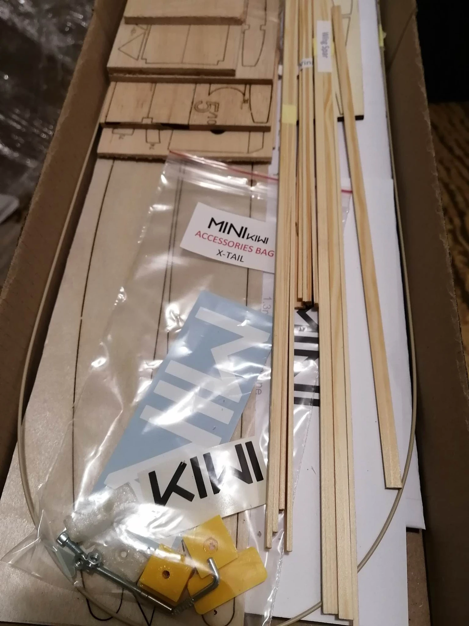 The Mini Kiwi is ideal for Canadian fliers who need a model weighing less than 250g. All the models we have are X tail gliders. Note they will not be easy to convert to electric as the fuselage is only 14mm wide. No instructions are currently available but the manufacturer is in the process of creating a photo build log that he will put on his website.