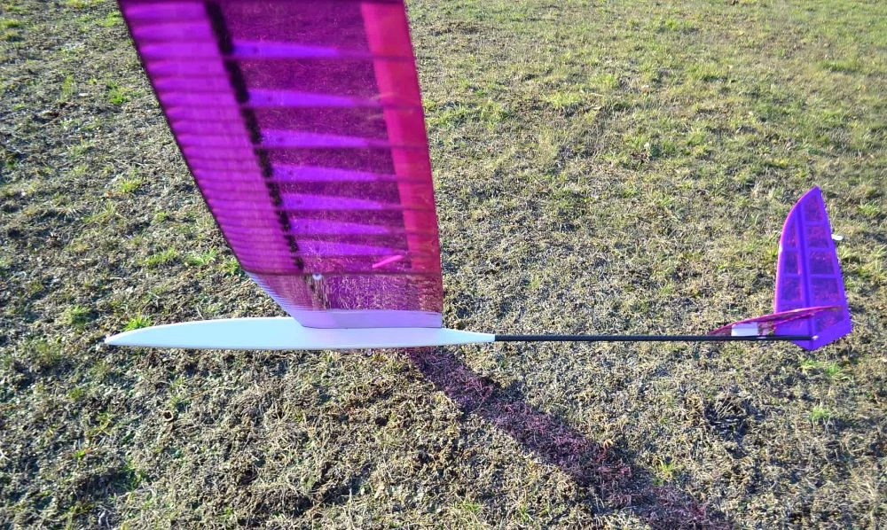 The Drela HT12 mod profiled tailplane is constructed with balsa ribs, CRP tubular spar and a balsa leading edge.