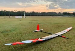 The model can be built lighter for the same strength/stiffness. New profiles inspired by the latest F5J category profiles manufactured with FullCore technology and then modified for RES building capabilities. The emphasis was on increasing the penetration, this inevitably lead to reduce the maximum thickness of the profile and its deflection. The airfoil also produces less lift and so the weight of the airframe had to be reduced. Due to the now fully exploited potential of conventional construction, a unique and previously unused geodetic rib design was decided upon. This method increases the required wing stiffness by an order of magnitude. The result is a lighter airframe with greater stiffness, a thinner airfoil for high penetration, and a shallower wing depth for reduced drag. Less wing lift and the required low weight for the opposite of high lift after takeoff. The distribution of the profiles along the wing’s semi-span ensures maximum glideability even at very low flying weight and stability when circling without the need for major control inputs.